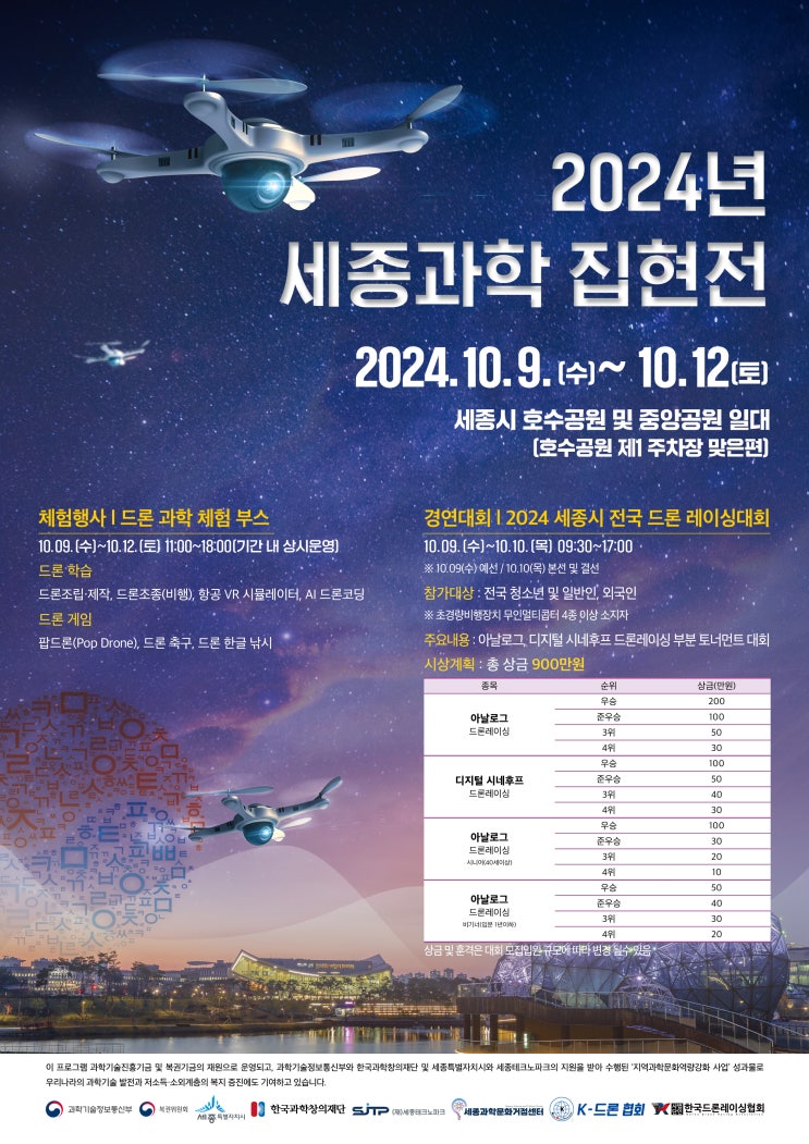 [2024 세종과학집현전(전국 드론레이싱대회 등)] 행사 개최 안내해 드려요. 우리시 과학기술문화를 확산하...