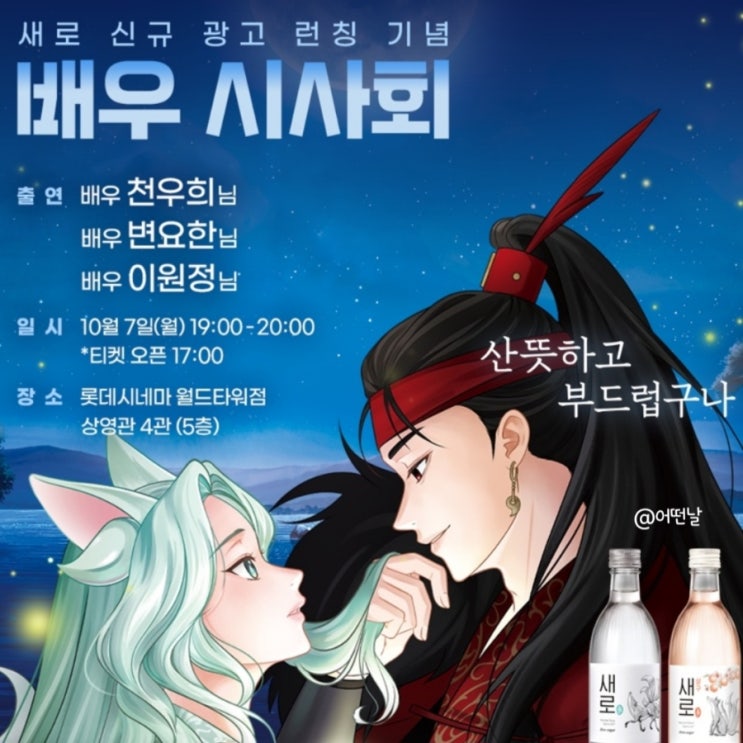 롯데칠성의 소주 새로가 신규 광고 관련 이벤트를 한다고 해요. ☆ 새로 광고 배우 시사회 ☆ 출연 : 배우 ...