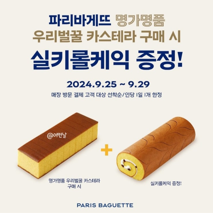파리바게뜨 증정 행사 9/25~9/29 : 카스테라 구매 시 롤케익 증정