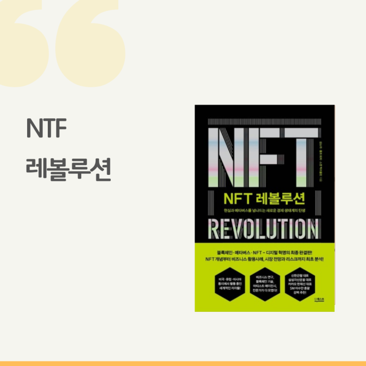NFT레볼루션 저자 : 성소라, 롤프 회퍼, 스콧 맥러플린 출판사 : 더퀘스트 NFT는 블록체인 기술로 만...