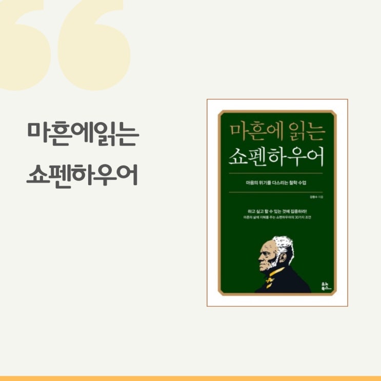 마흔에 읽는 쇼펜하우어 저자 : 강용수 출판사: 유노북스 쇼펜하우어는 독일의 철학자이며, 18세기 말부터 ...