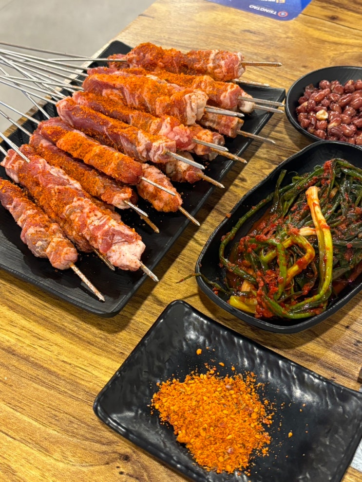 여름 내내 먹고싶었던 양꼬치를 먹기 위해 숯불숙성통양갈비 & 파김치 맛집으로 유명한 건대 양꼬치거...