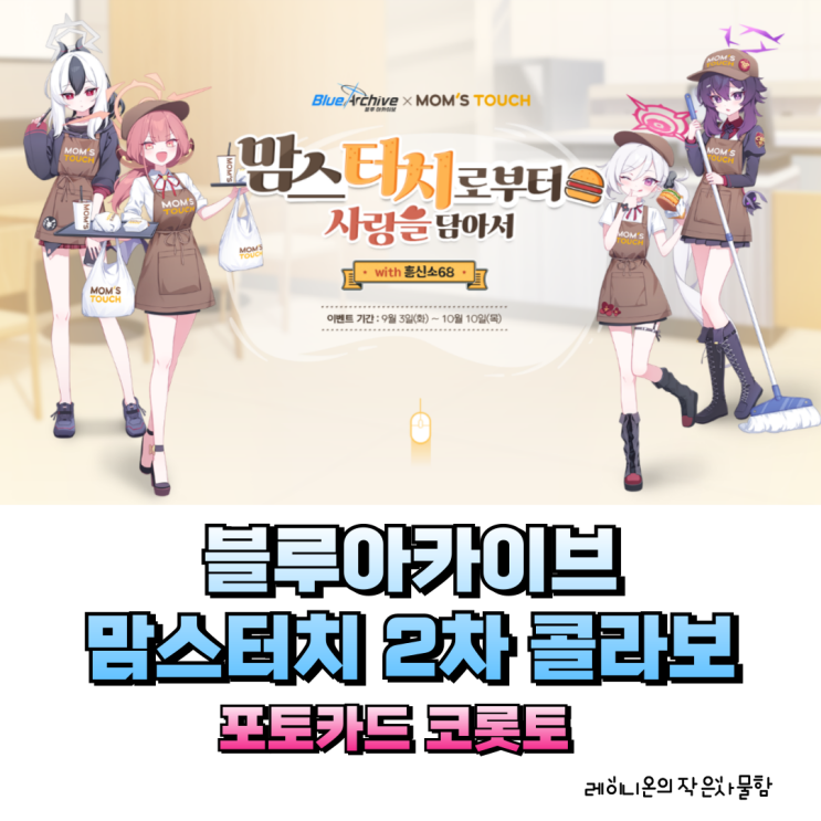 블루아카이브 맘스터치 2차콜라보 흥신소68 포토카드 아크릴 코롯토 쿠폰 소개
