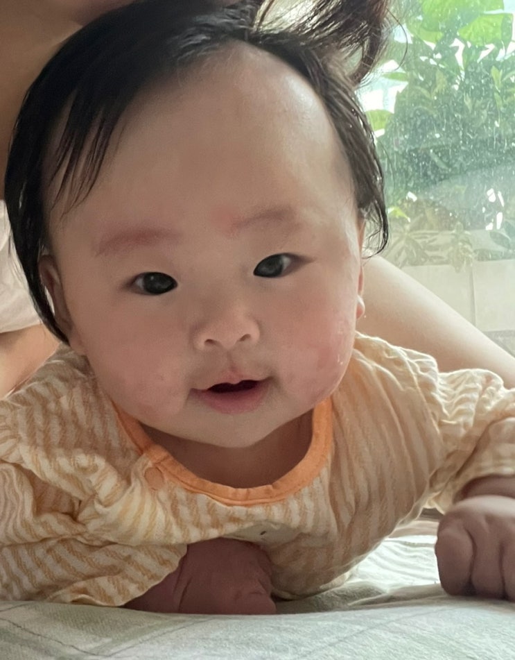 아침에 엄마가 빨리 와서 아기 보라고 해서 달려갔더니 오늘따라 유난히 고개를 뒤로 젖히면서 몸을 이리저...