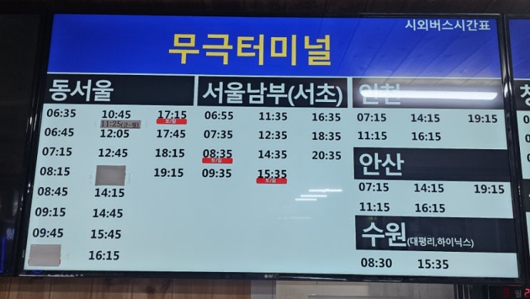 안녕하세요, 행운이에요.~ 금왕임시정류소 무극버스터미널 무극시외버스 시간표가 변경되었더라고요. 예전...