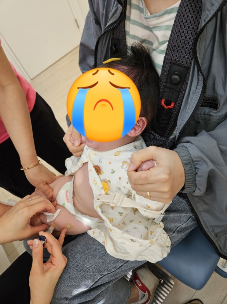 6개월 접종하러 아침부터 소아과 갔다가... 양 허벅지에 주사를 3방! ㅠㅠ 4개월 접종 때도 열이났었던 꼬...