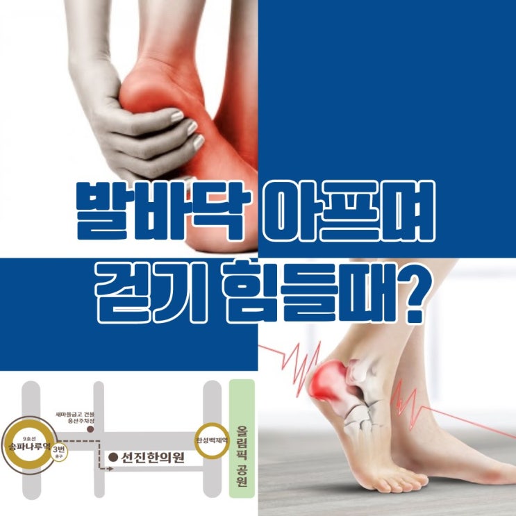안녕하세요 송파나루역 3번출구 주차가능한 방이시장의 경희선진한의원입니다. 걷거나, 운동하거나 발바닥...
