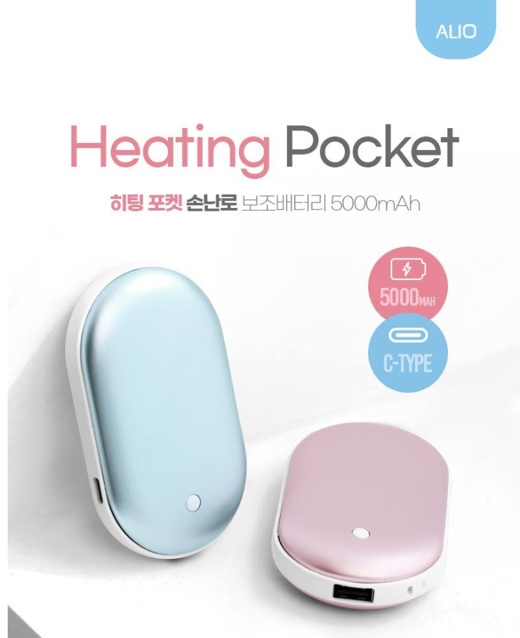 상품명 : ALIO 히팅포켓 5,000mAh 손난로보조배터리 C타입 상품번호 : 1912264 Heating Pocket 히...