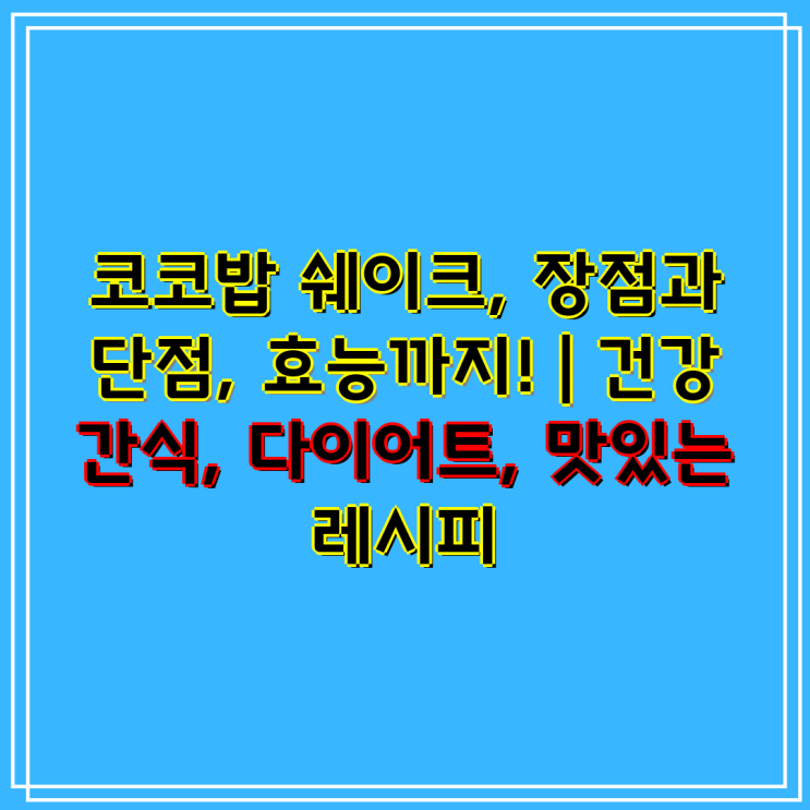 코코밥 쉐이크, 장점과 단점, 효능까지! | 건강 간식, 다이어트, 맛있는 레시피