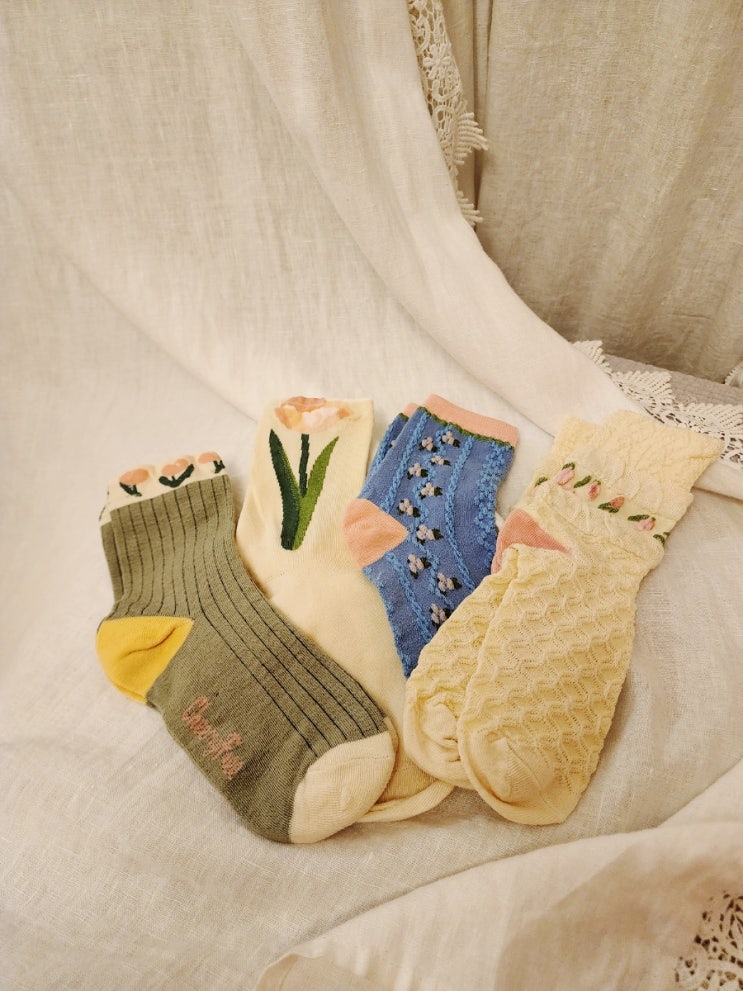 socks in 고급 면사로 제작하여 촉감이 부드러워 착용감이 좋은 꽃양말 소개해요! 4족을 무료배송으로 살수...