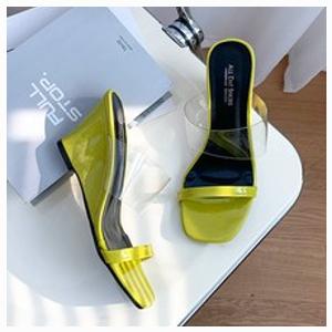 라블 여성용 투명 스트랩 웨지힐 슬리퍼 8cm