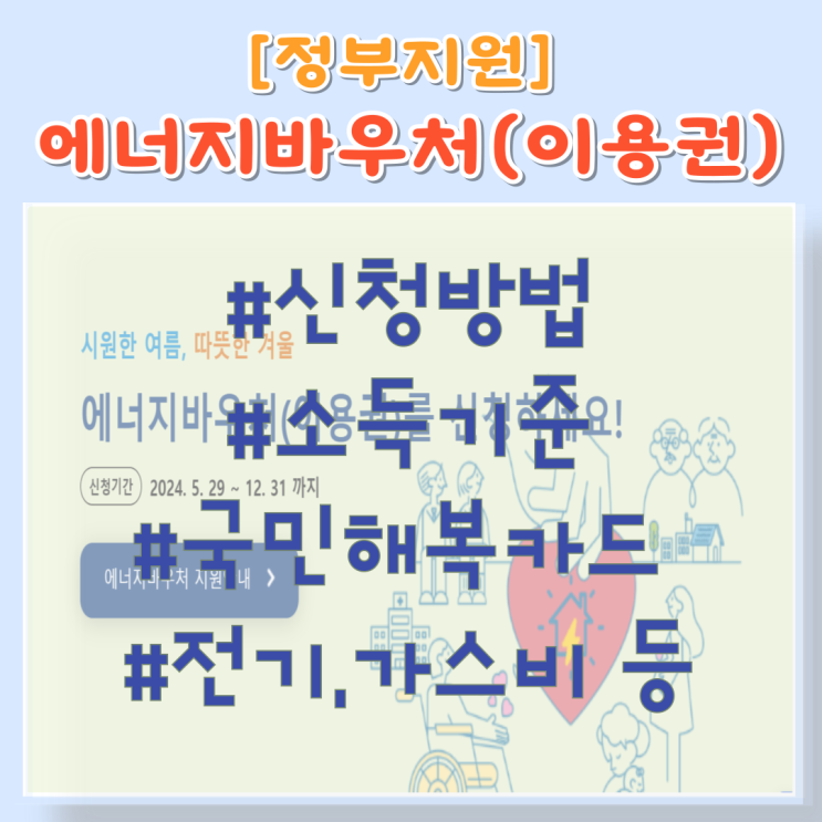 #에너지바우처,#국민행복카드,#신청기간,#사용기간,#하절기,#동절기,#지원금액,#에너지바우처,#생계,#의료,#주거,#교육,#급여수급자,#노인,#영유아,#임산부,#장애인,#중증,#희귀,#중증난치질환자,#