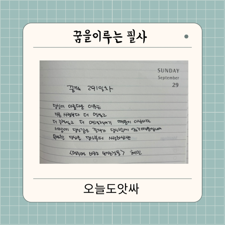 꿈필 291일차 - 특별한 존재인 나