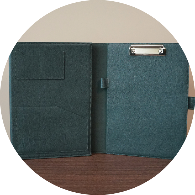 가죽파일 주문제작 :: 다크그린 소가죽 A4 서류 태블릿 수납 파일