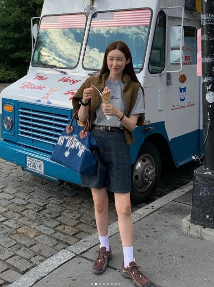 강민경 운동화 휠라 에샤페 초코 인스타 가을코디