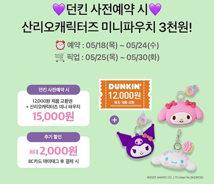 어제 베스킨라빈스 산리오 장우산 예약했는데 오늘은 던킨 산리오 미니파우치 예약날이다. [던킨 도너츠] ...