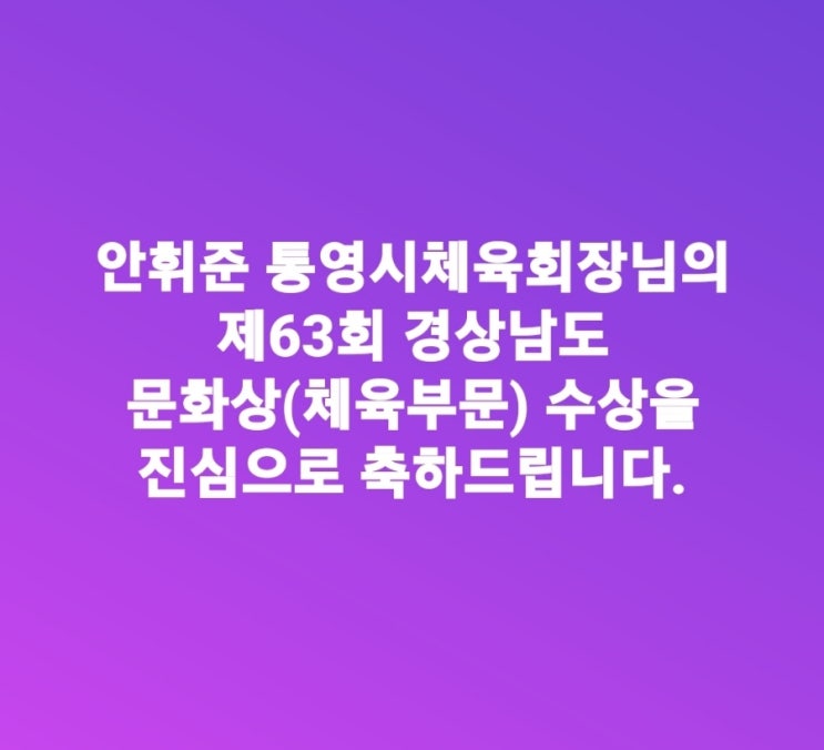 안휘준 통영시체육회장님의 경상남도 문화상 수상을 진심으로 축하드립니다.