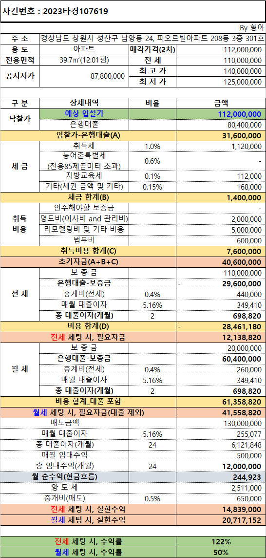창원 트리비앙아파트 매각 복기