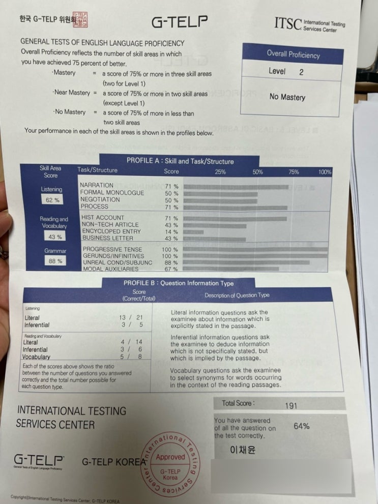 지텔프 64점 ㅋㅋㅋ