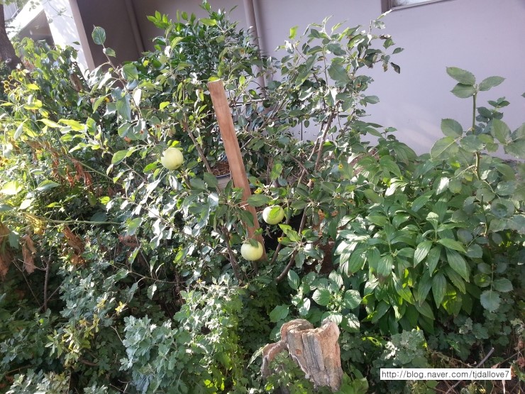 친정집 아파트 1층 화단에 사과가 열린게 보이더라구요.. 자그마한 사과가 어찌나 귀여운지.. 이렇게 아파...