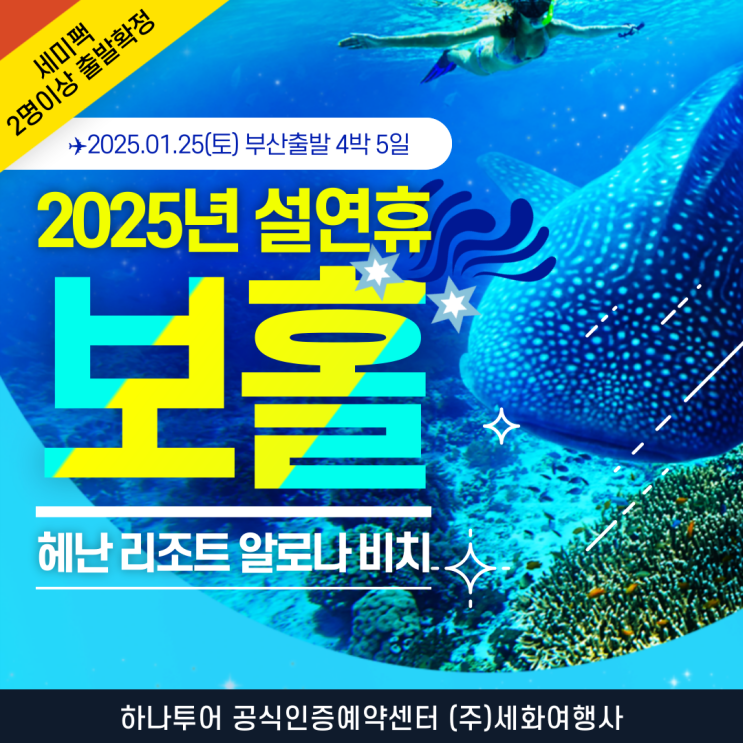 2025년 설 연휴 해외여행 준비중이신가요? 겨울 추위를 피해 따뜻한 햇살을 만끽하고 싶다면 필리핀 보홀이...