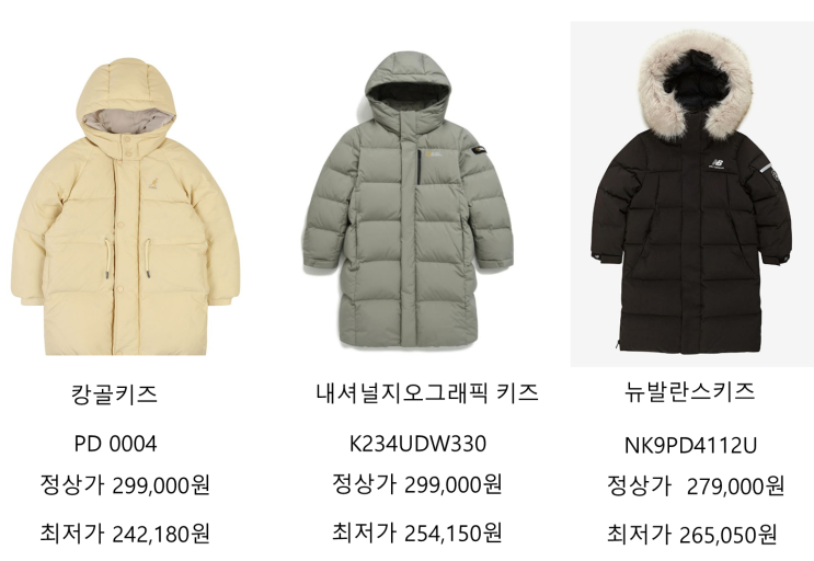 키즈 롱패딩, 키즈 롱 패딩 주요 브랜드 뉴발란스키즈(NK9PD4112U), 캉골키즈(PD 0004 ), 내셔널지오그래픽키즈(K234UDW330) 키즈 롱 패딩 가격 정보 소개