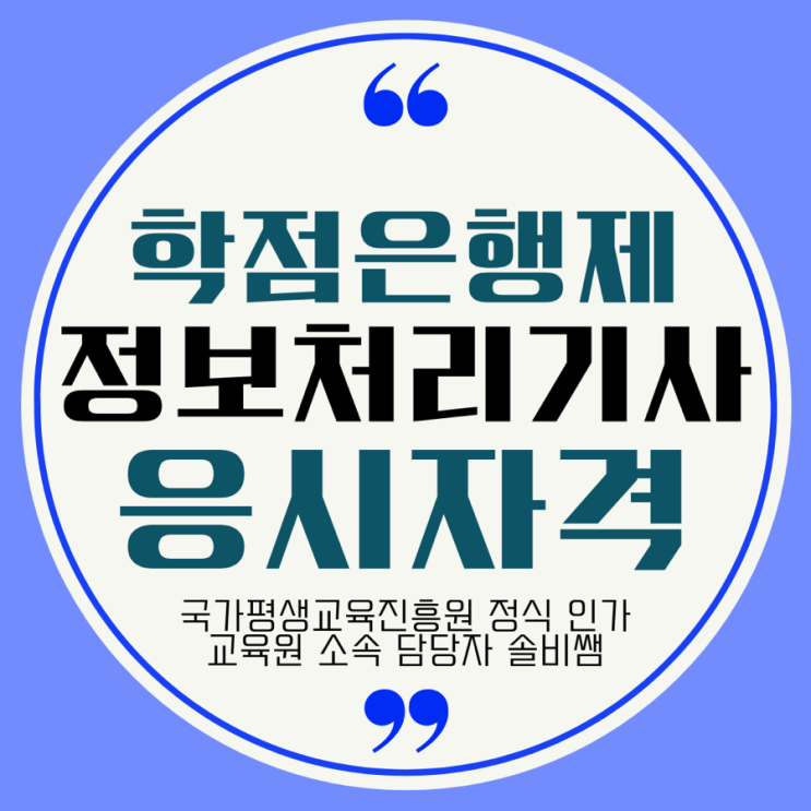 안녕하세요! 학점은행제 온라인 과정을 통해서 정보처리기사 응시자격을 갖추고 면허증 시험까지 치뤄 합격...