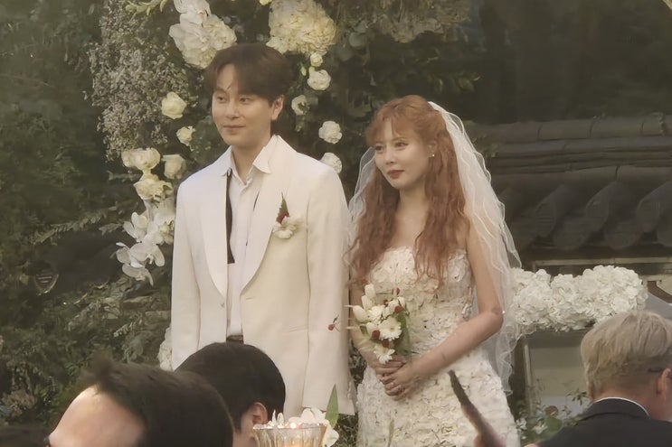 동료에서 부부가 된 세기의 커플 용준형❤️현아 결혼식! 하얀색 턱시도를 입은 용준형과 플라워 모티브가 ...