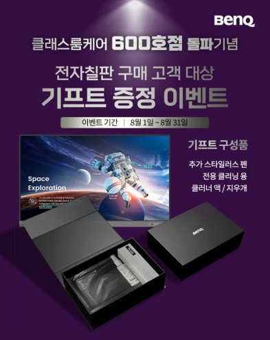 시력 보호 기능과 미세 먼지 감지까지, 벤큐 전자칠판 인증점 클래스룸케어™ 전국 600호점 돌파 기념 기프트 증정 이벤트