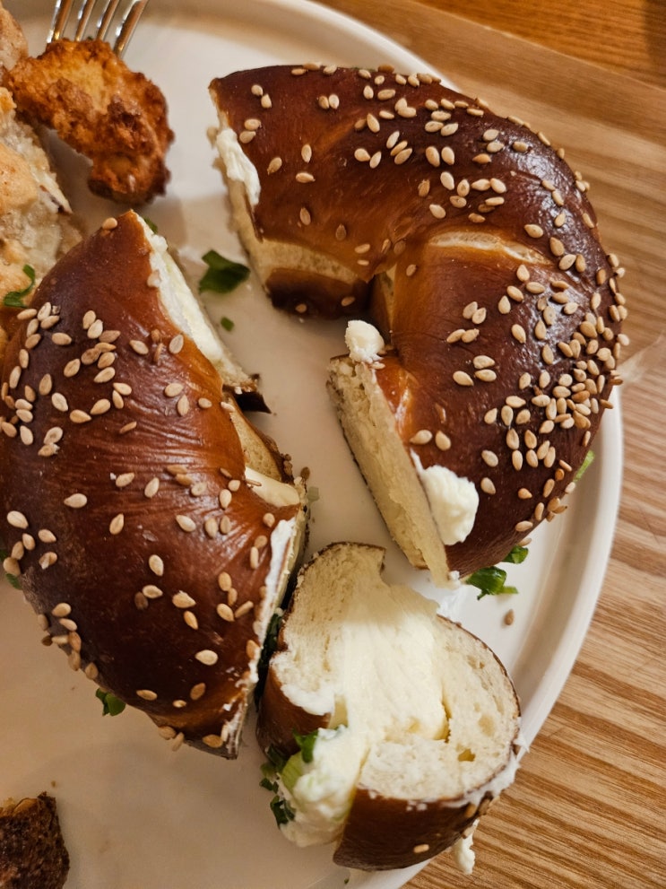 [펀스터] 증산역, 불광천 베이커리 카페;?쪽파 크림치즈베이글 추천!