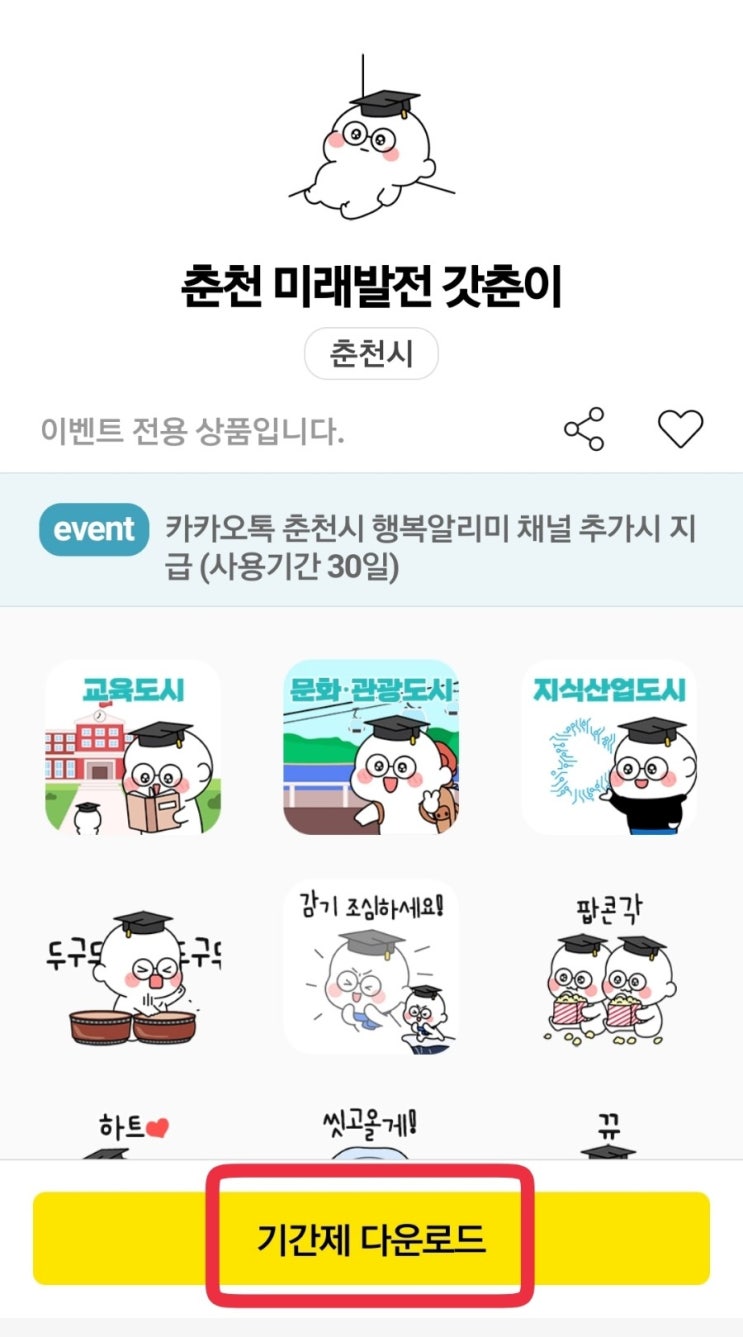카톡 무료이모티콘 다운! 춘천 미래발전 갓춘이 다운로드