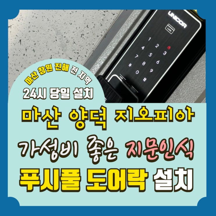 마산 양덕동 지오피아 아파트 지문인식 푸시풀 도어락 설치 마산 창원 진해 열쇠