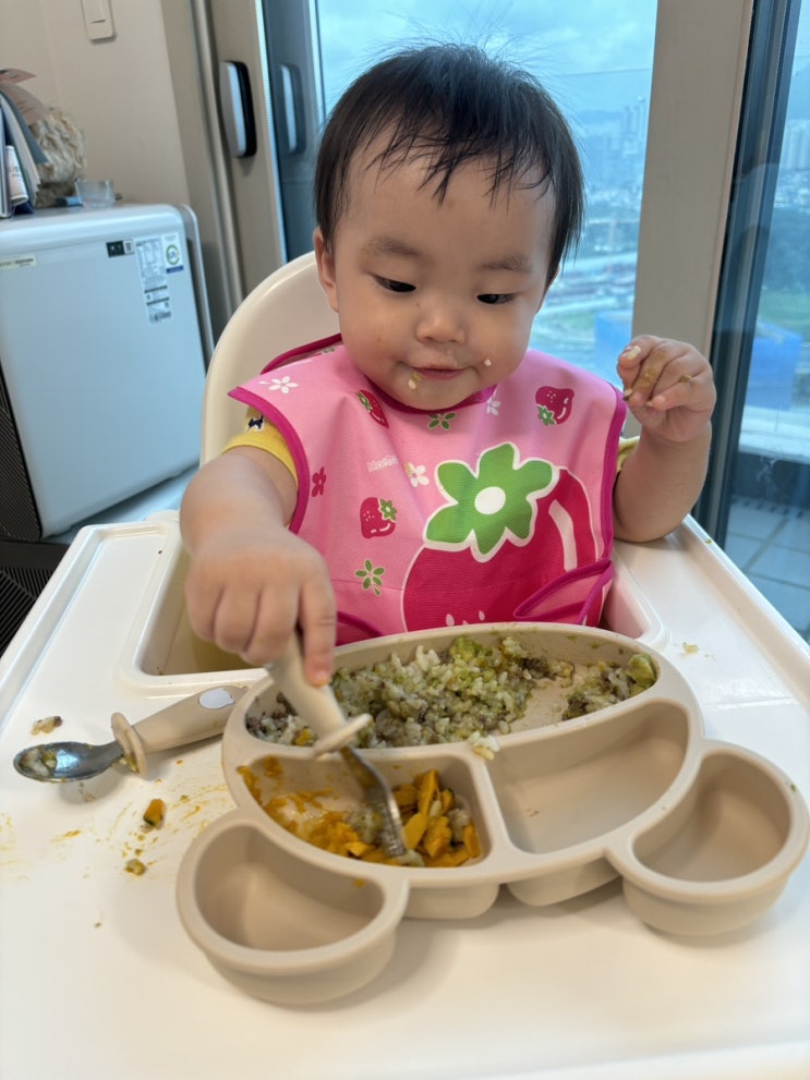 요즘 날더운데 밥시중까지드느라 슬슬 한계가 오려고 하네요 먹여주려하면 숟가락뺏어서 자기가 먹겠다고.....