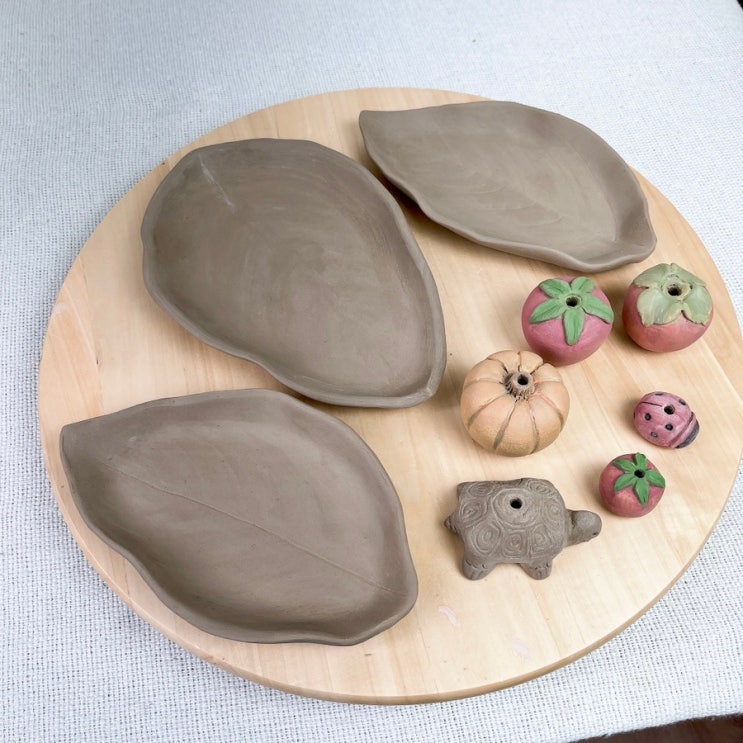 남은 백토로 과일과 거북이 무당벌레 등. 아기자기한 인센스홀더를 만들며 흙작업 마무리했어요. 10월 말경...