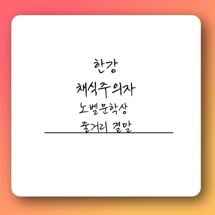 한강 채식주의자 내용 소설 줄거리 해석 작가 노벨문학상 수상자 추천도서 소설가 한강이 대한민국 최초 노...