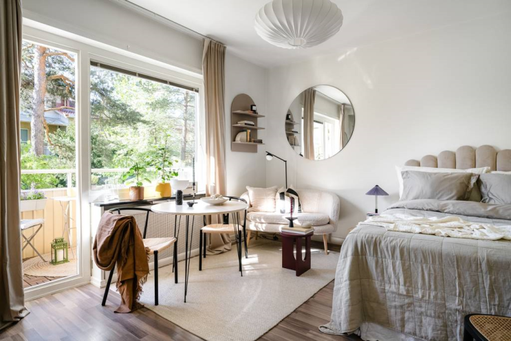 8평 원룸인테리어 1인소파 아치형 선반 가구배치 예쁜집