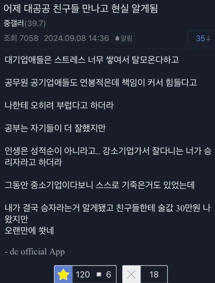 대기업 다니는 친구 만나고 현실을 알게된 디씨인