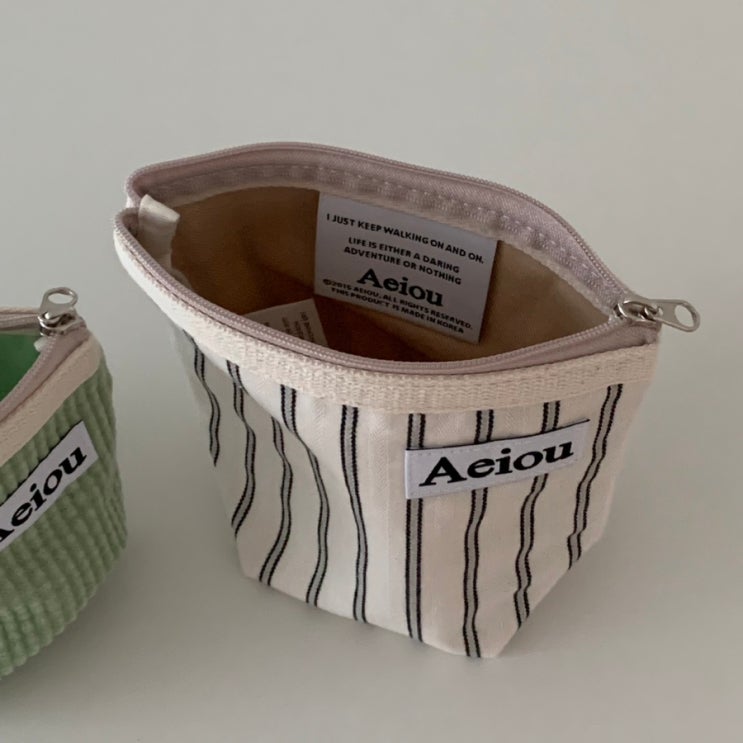 아에이오우 파우치 Aeiou ? Cotton Gray Line • Pistachio Cream Corduroy 다 갖고싶은 아에이...