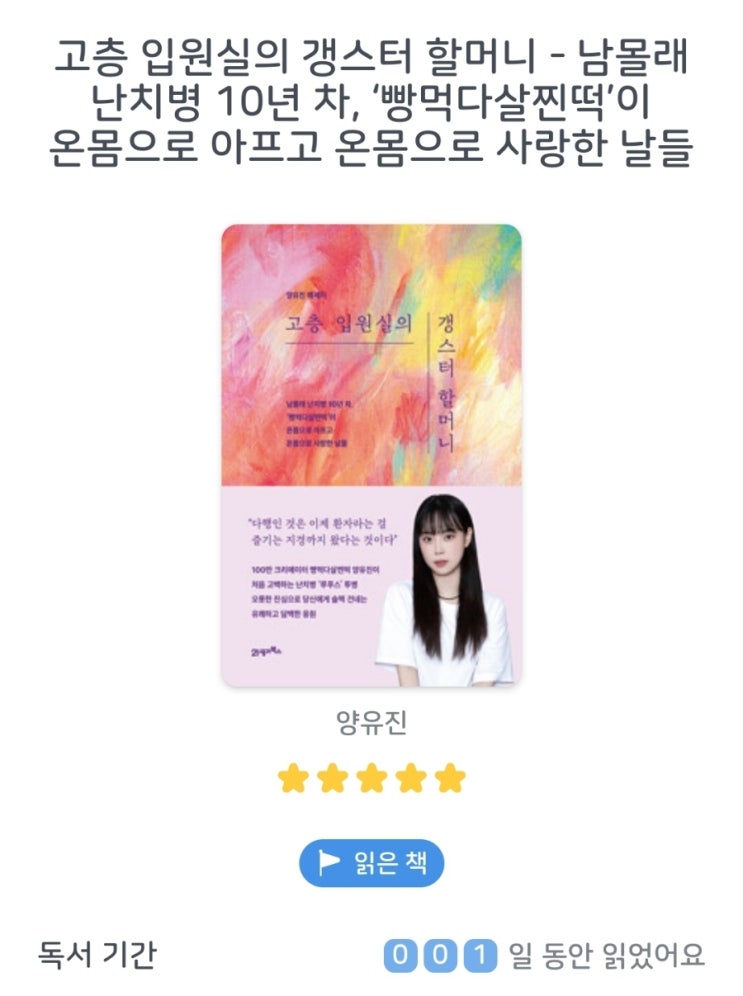 고층 입원실의 갱스터 할머니 난치병 10년 차 빵먹다살찐떡 양유진 에세이 안녕하세요, 도서 전문 블로거 ...