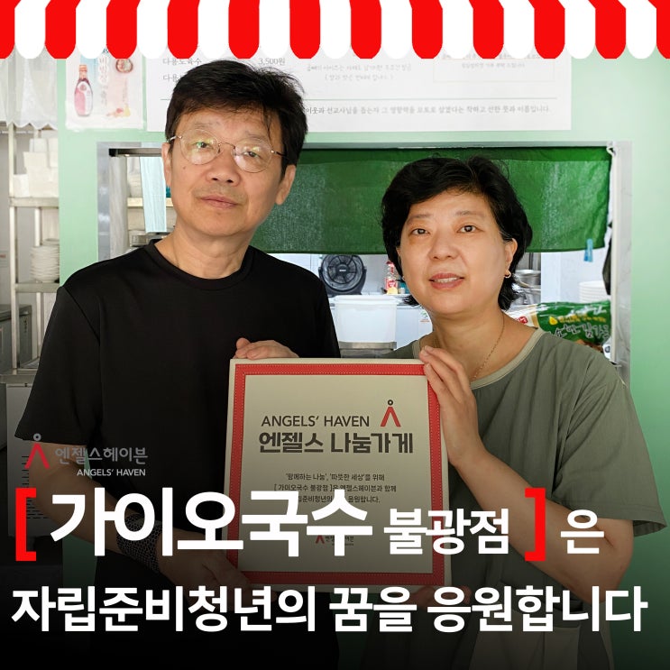 [엔젤스 나눔가게] 불광동 맛집, 가이오국수 불광점은 자립준비청년의 꿈을 응원합니다.