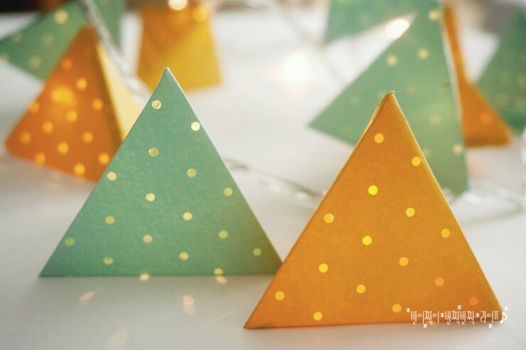초간단소품만들기) 크리스마스트리전구활용하기/컬러전구만들기/입체삼각형/타공지만들기