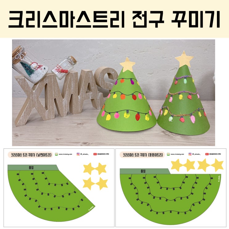 [엄마표놀이 도안] 크리스마스 트리 전구 꾸미기