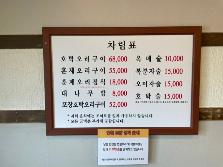 메뉴 남양주 맛집 고야 시그니처 음식 호박오리구이 &대나무밥 호박오리구이 (68000) 주문 후40분정도 ...