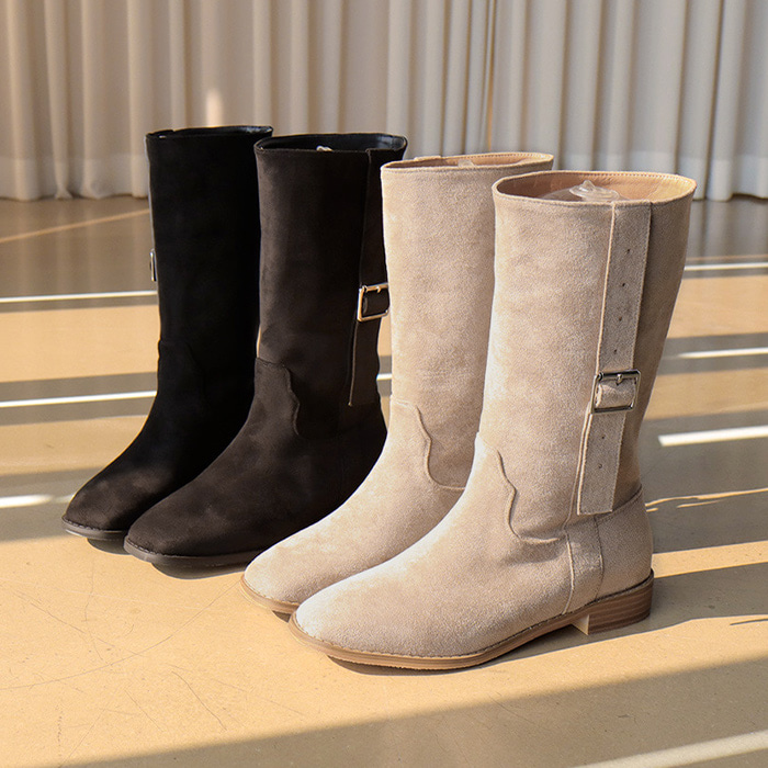 [바닐라슈] 가이온 벨트라인 스웨이드 미들부츠(2cm)