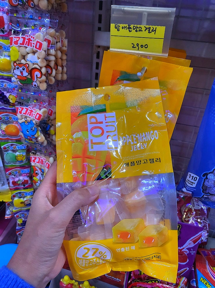 탑 프루트 애플망고젤리 먹은 후기 알려드릴게요 ~ ! 요새 시장에서 사다 먹는 사각형 모양의 젤리로 유명...