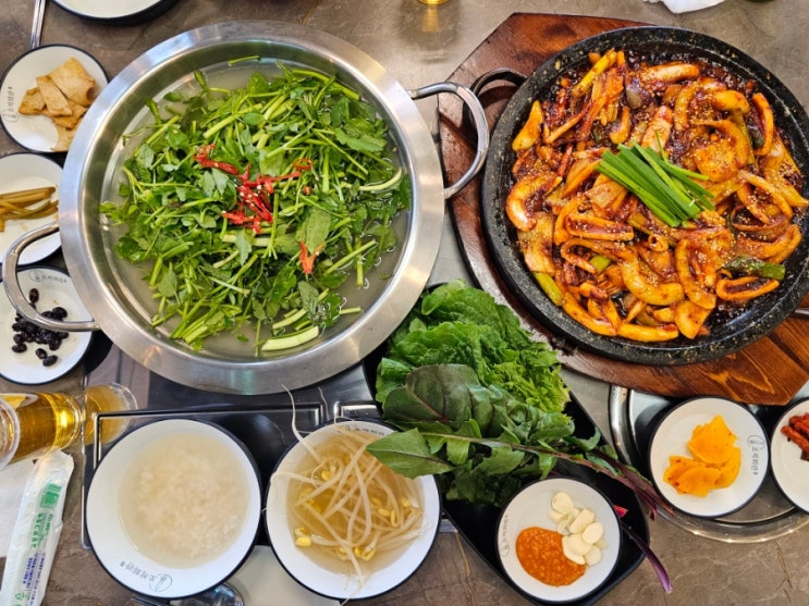 지글지글 돌판위에 매콤한 오징어볶음과 봄내음 가득한 향긋한 미나리 듬뿍의 백합탕을 검단신도시 술집 오...
