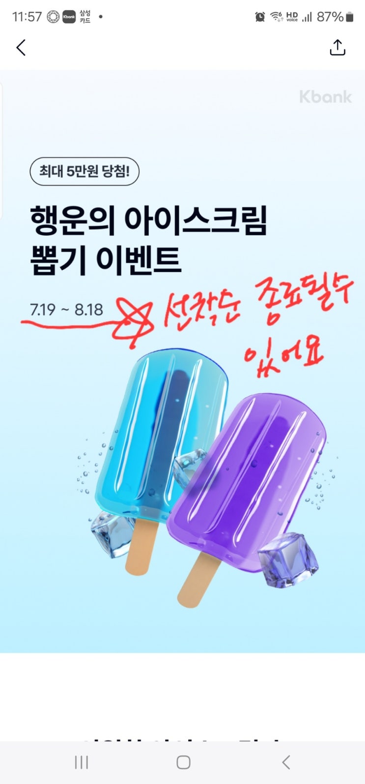 케이뱅크 아이스크림 뽑기 선물하기 이벤트(선착순 조기 마감 종료 주의)