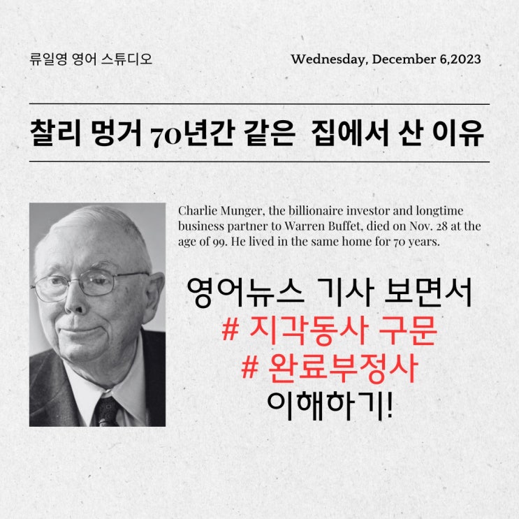 찰리 멍거 영어뉴스기사 보면서 지각동사, 완료부정사 이해해 보아요~!