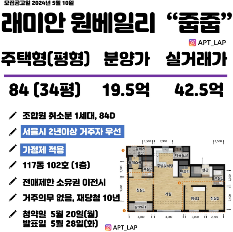 래미안 원베일리 줍줍, 로또 1등보다 좋구나