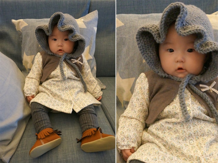 딸아이 겨울 외출복 밍크뮤 원피스 그리고 해피프린스 보넷 너무나 사랑스러운...